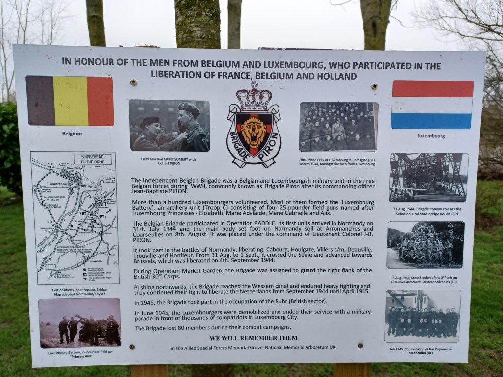 - In honour of the men from Belgium and Luxembourg, who participated in the liberation of France, Belgium and Holland.