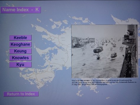 Name Index – K – (Photo Credit Royal Navy Official Photographer) – View from HMS Hermes of the vast number of small boats which welcomed the Aircraft Carrier home from the Falklands and escorted her into Portsmouth Harbour on 21st July 1982.