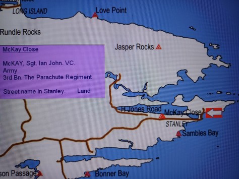 McKay Close – Sergeant Ian John McKay VC. Army, 3rd Battalion The Parachute Regiment. Street name in Stanley. Land.