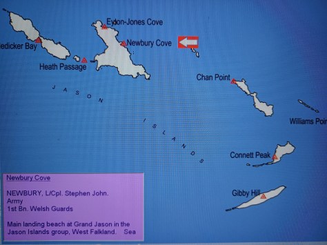 Newbury Cove – Lance Corporal Stephen John Newbury. Army, 1st Battalion Welsh Guards. Main landing beach at Grand Jason in the Jason Islands group. West Falkland. Sea.