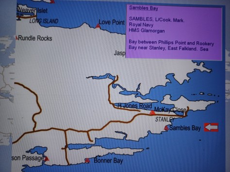 Stephens Island – Steward Mark Royston Stephens. Royal Navy, HMS Antelope. Island in the San Carlos River, East Falkland. Land.