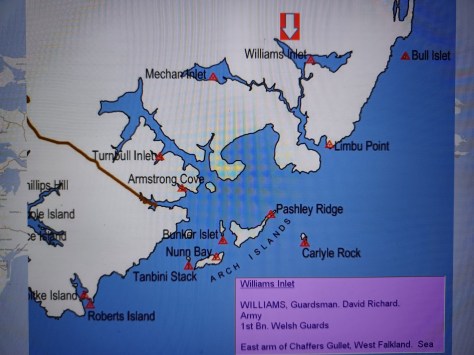 Williams Inlet – Guardsman David Richard Williams. 1st Battalion Welsh Guards. East arm of Chaffers Gullet, West Falkland. Sea.