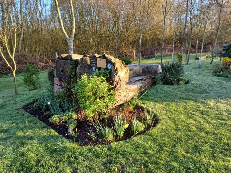 Overlooking the Dieppe Raid memorial garden we have created a seat between two upturned Ash tree stumps. A red Maple tree had already been planted behind the seat and is one of three that overlook the Dieppe Raid memorial, which will eventually form a lovely backdrop in future years during the Autumn.