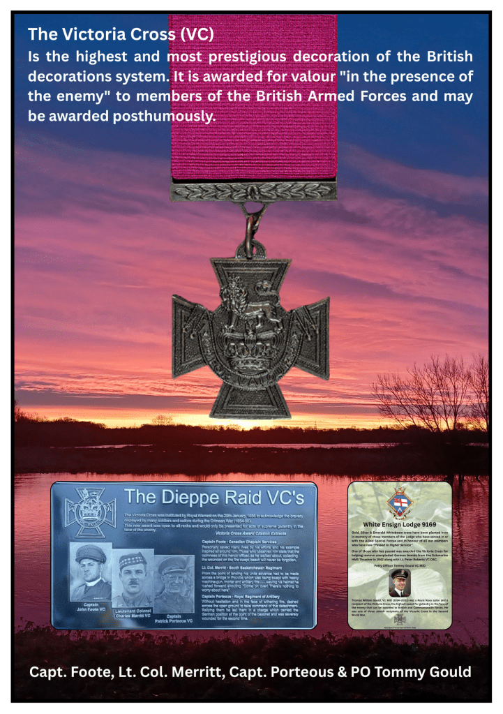 - The Victoria Cross awarded to Capt. Foote, Lt. Col. Merritt, Capt. Porteous and PO Tommy Gould.