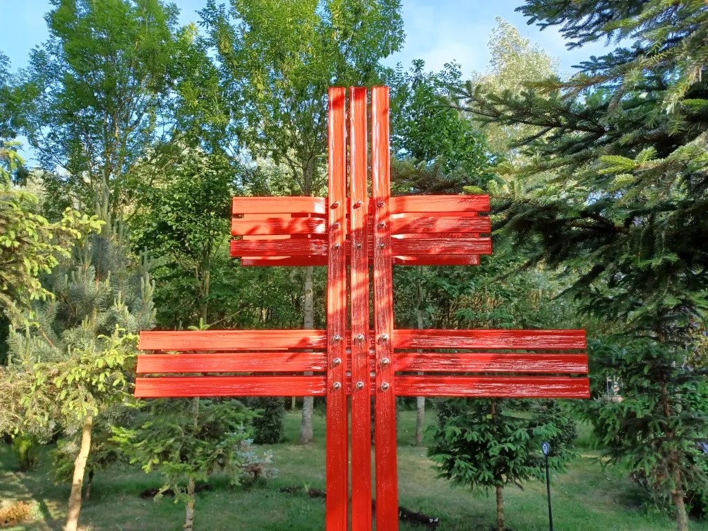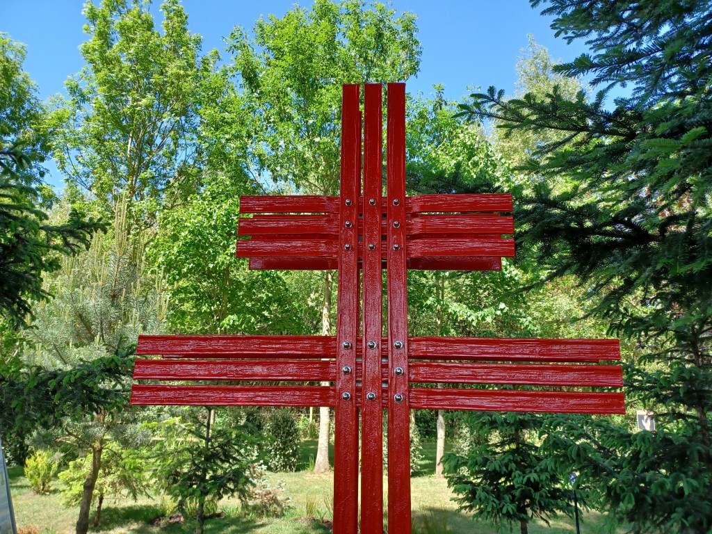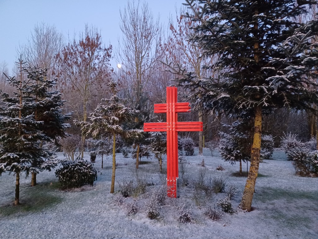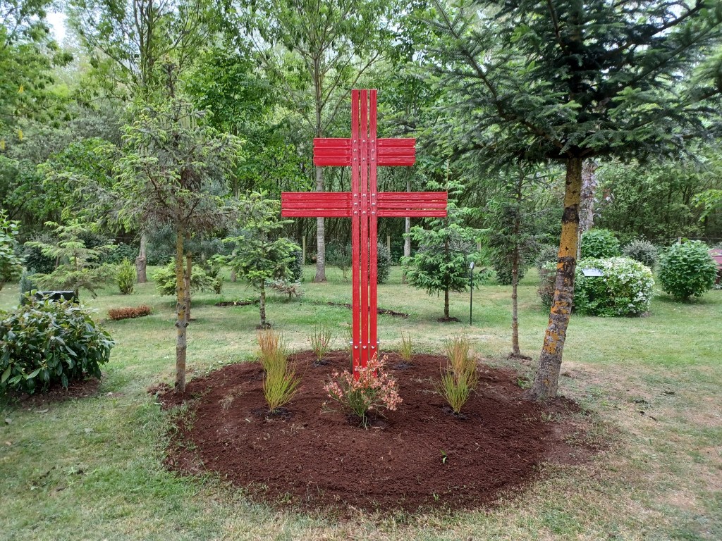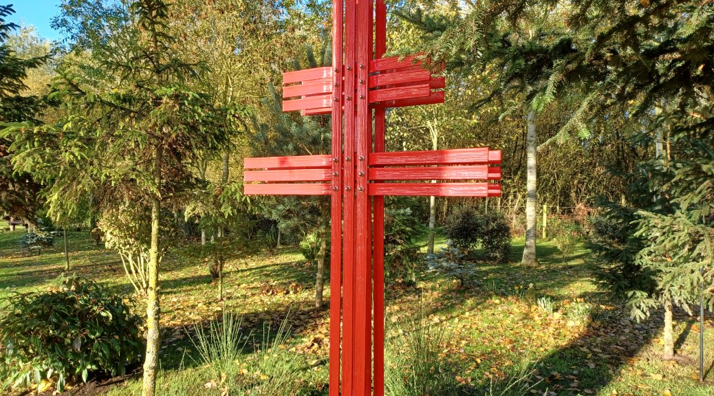 This Cross stands proud within a group of Pine trees that came from a Forest Guards cottage near Moussey in the Vosges mountains of eastern France.