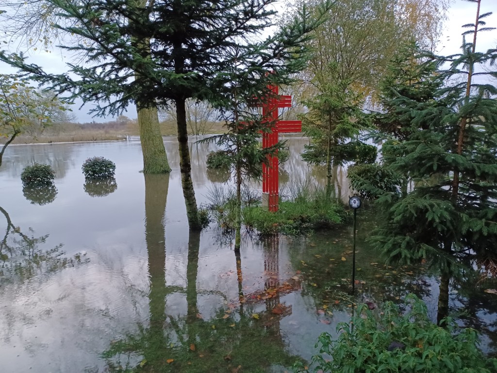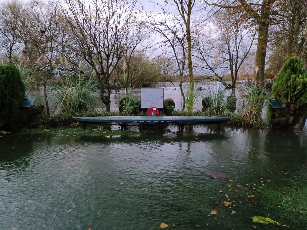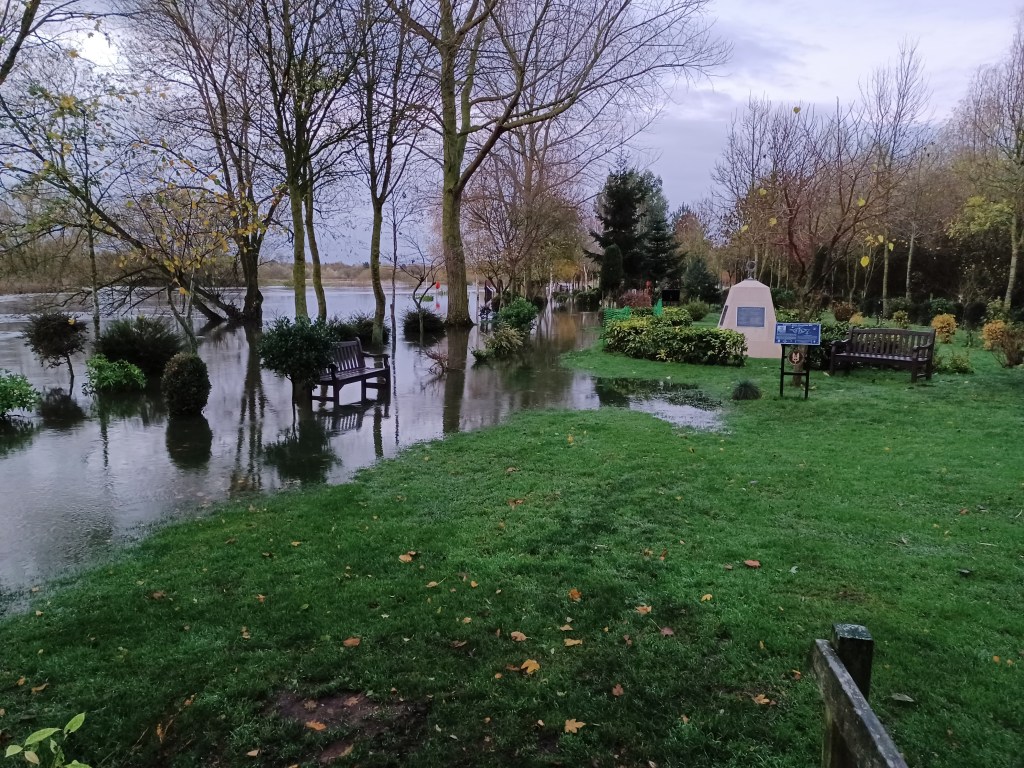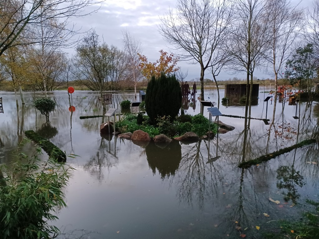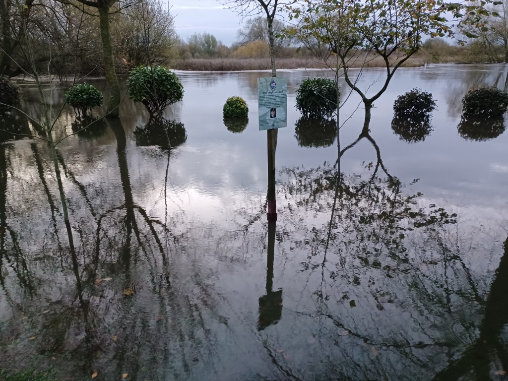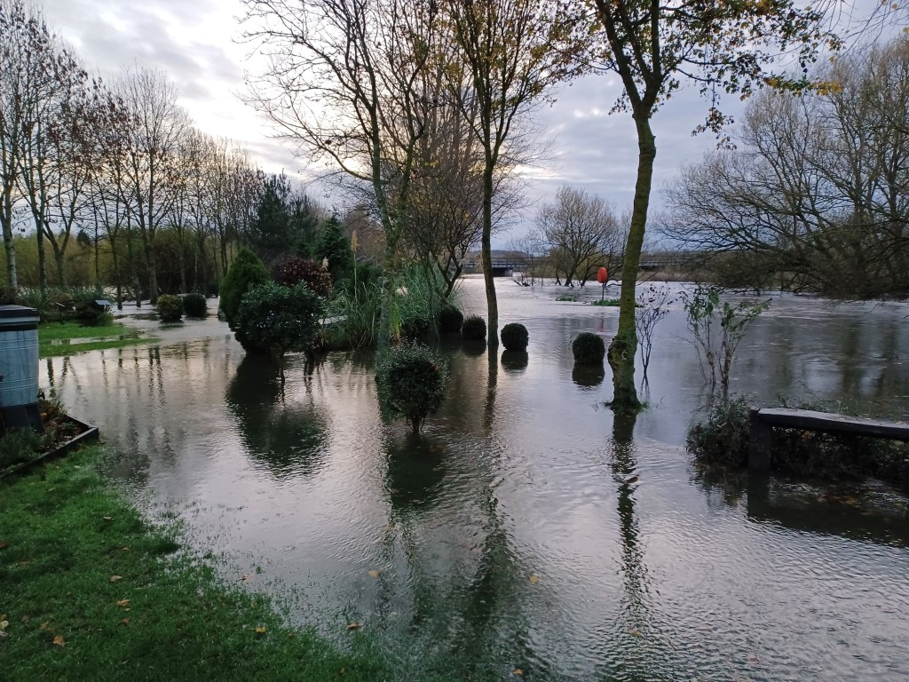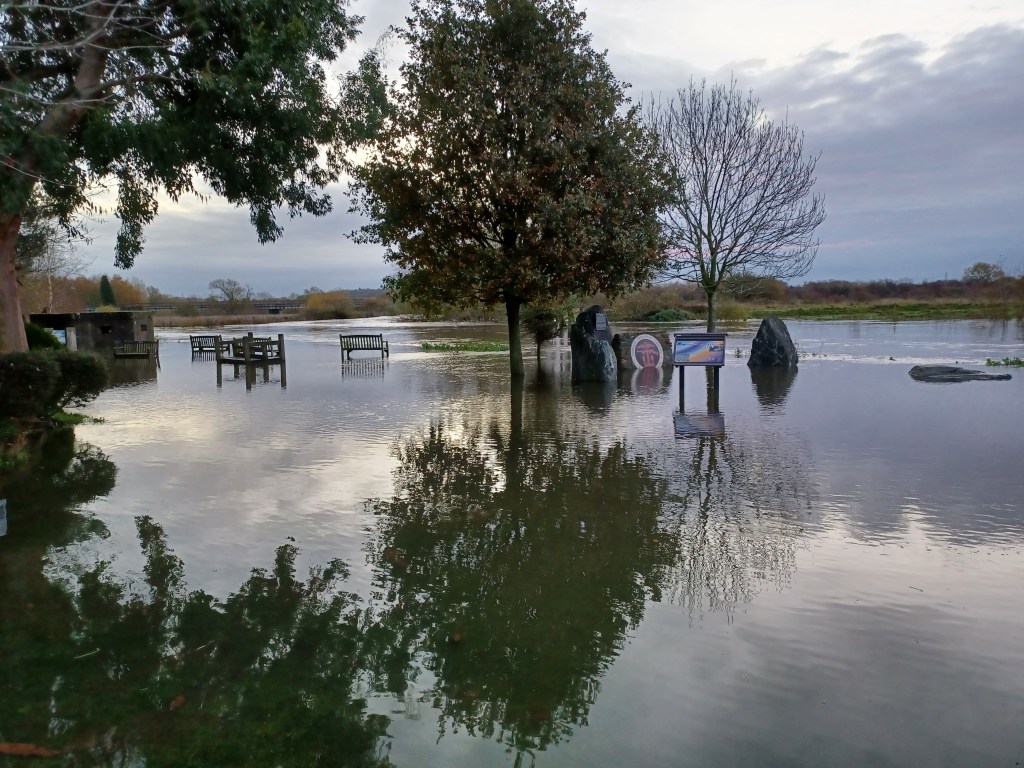 Overnight rain has swelled the River Tame and as we are situated right in the middle of a flood plain between the Tame and the Trent , the Grove is underwater again for the second time this year. Last year we had 9 floods!