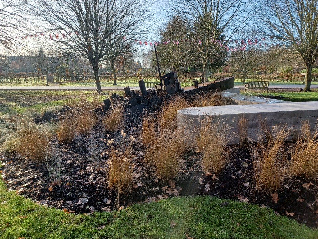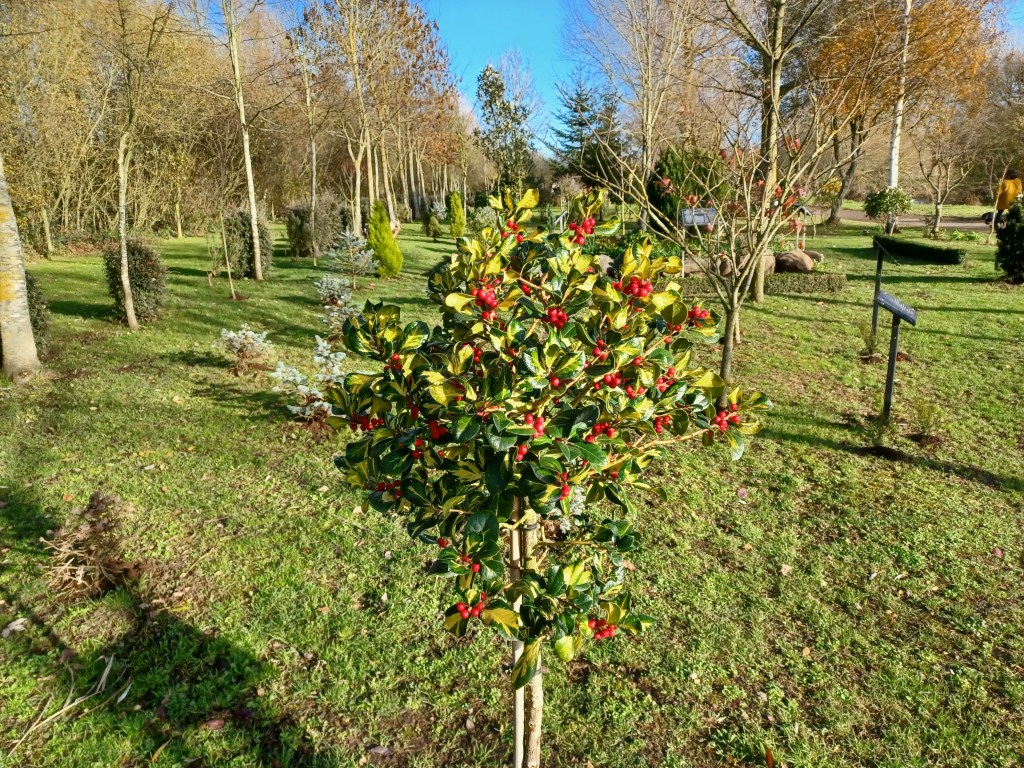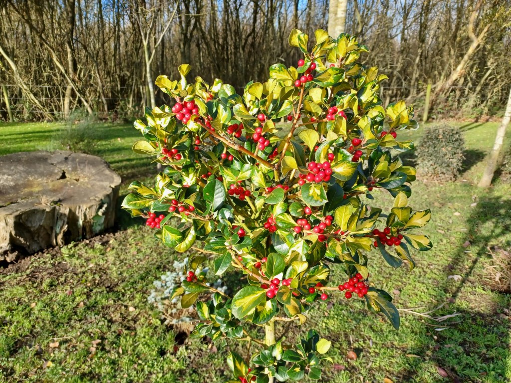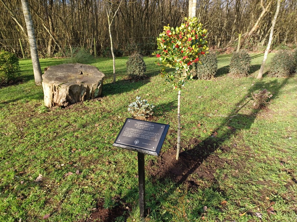 We have replaced the Mountain Ash tree that was suffering damage from wind and flooding recently with a Holly – Ilex xaltaclerensis ‘Lawsoniana’. This is just behind the memorial honouring Harry Hudson who served with Force 316 in the Far East during WW2.