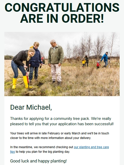 420 Hedging Bird feeding plants have been approved by the Woodland Trust for delivery in 2026 for planting in the Grove.