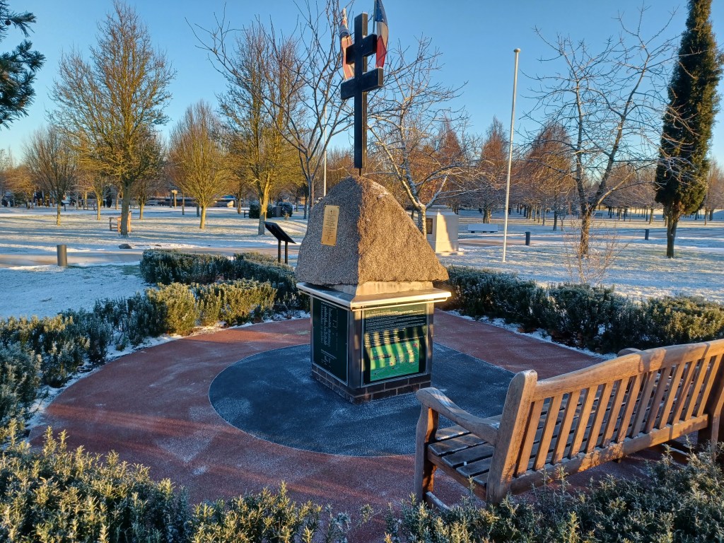 3. The Coral Granite with the commemorative plaque set in, and the Cross of Lorraine with the French and British Flags.