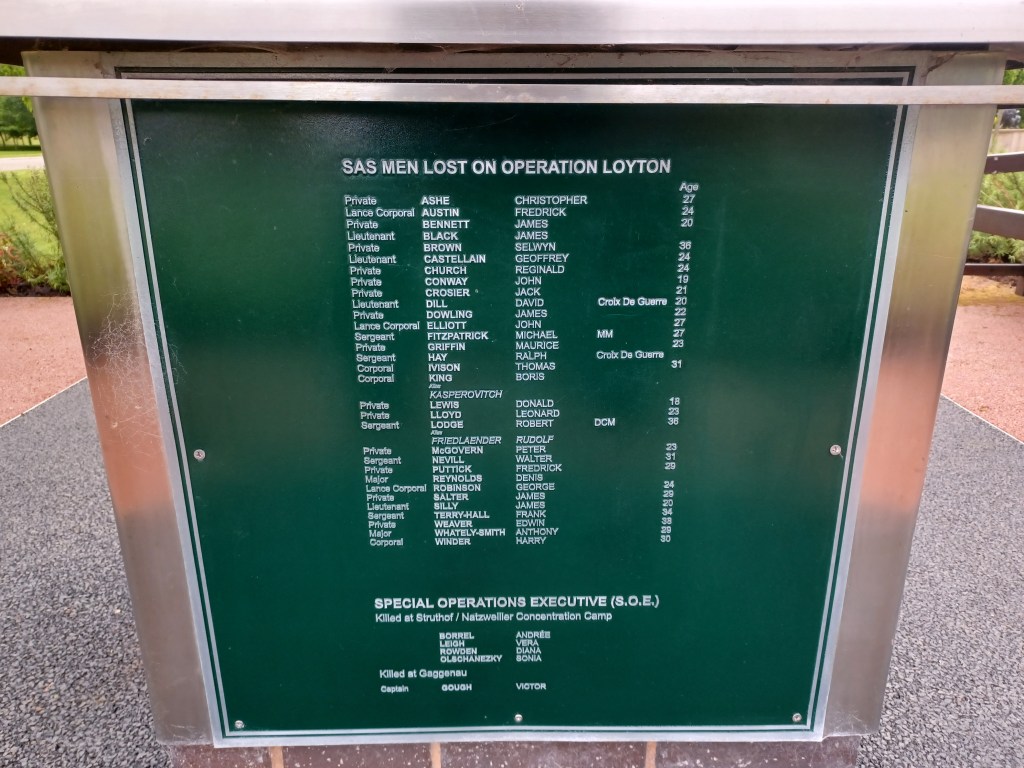 6. The names of the Special Air Service soldiers and the Women of Special Operations Executive who lost their lives behind enemy lines during Operation Loyton.
