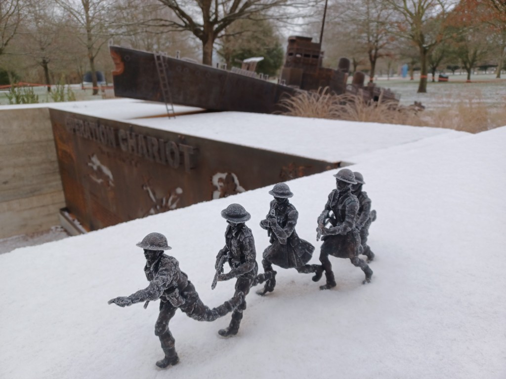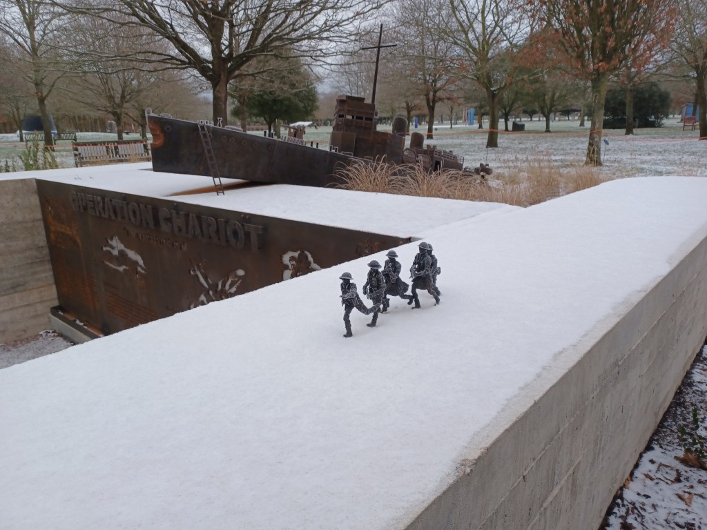 The St. Nazaire Raid memorial has now been established at the National Memorial Arboretum. “Operation Chariot” was an audacious raid using HMS Campbeltown to ram the Dry Dock gates in St. Nazaire. Commandos went ashore to destroy the Pump House and other installations.